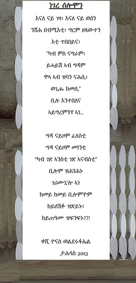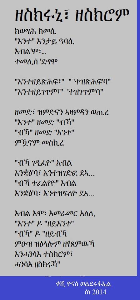 ሓደ ካብኣቶም፡ ጋዜጠኛን ገጣሚን ’ቀሺ ዮናስ ወልደሩፋኤል ክጠቅስ።